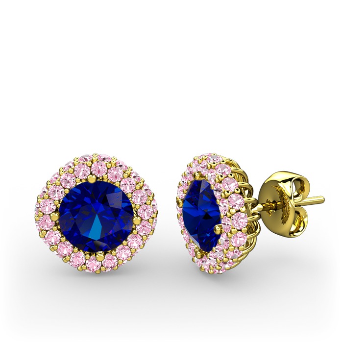 Lab safir ve pembe kuvars 925 ayar altın kaplama gümüş küpe