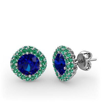 Lab safir ve yeşil kuvars 18 ayar beyaz altın küpe