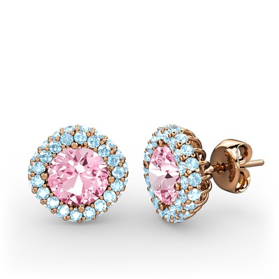 Pembe kuvars ve akuamarin 925 ayar rose altın kaplama gümüş küpe