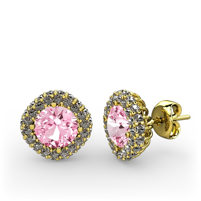 Pembe kuvars ve dumanlı kuvars 18 ayar altın küpe