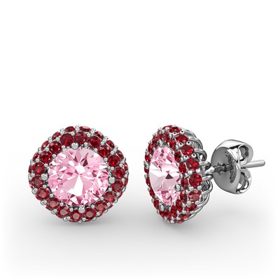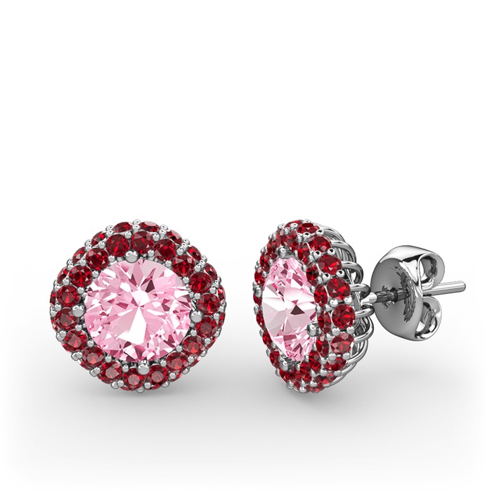 Pembe kuvars ve garnet 14 ayar beyaz altın küpe