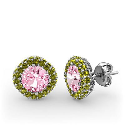 Pembe kuvars ve peridot 925 ayar gümüş küpe