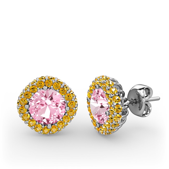 Pembe kuvars ve sitrin 18 ayar beyaz altın küpe