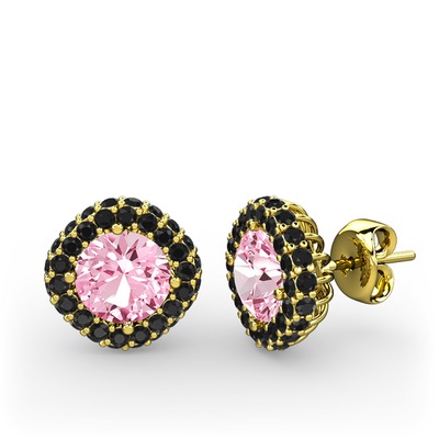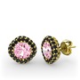 Pembe kuvars ve siyah zirkon 18 ayar altın küpe