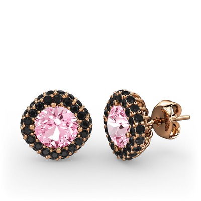 Pembe kuvars ve siyah zirkon 8 ayar rose altın küpe