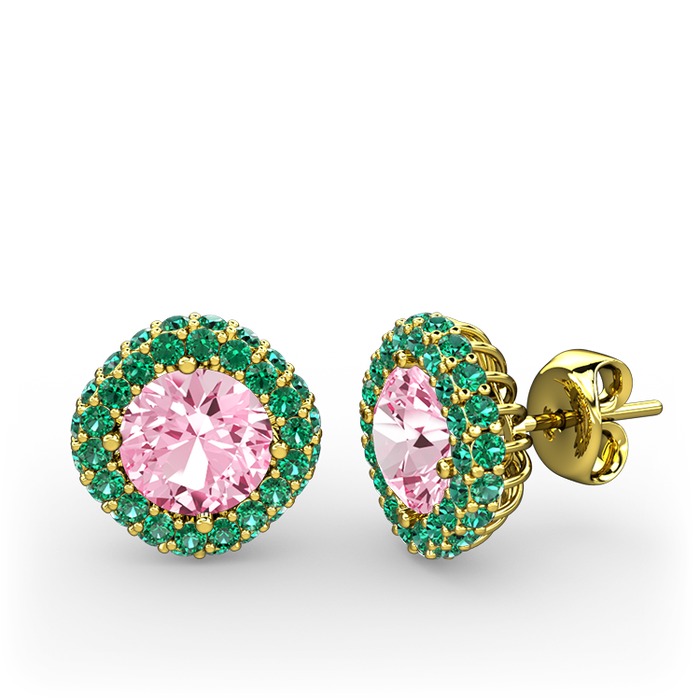 Pembe kuvars ve yeşil kuvars 8 ayar altın küpe