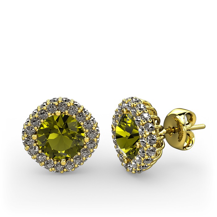 Peridot ve dumanlı kuvars 8 ayar altın küpe