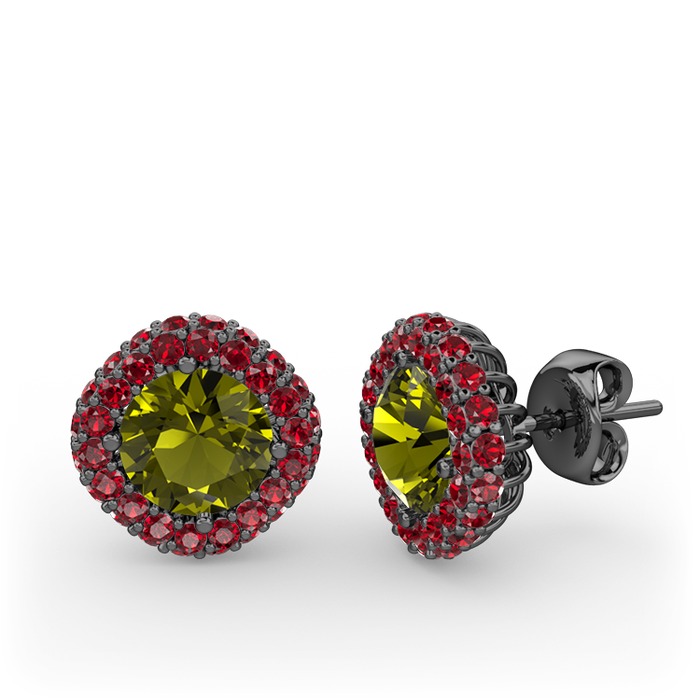 Peridot ve garnet 925 ayar siyah rodyum kaplama gümüş küpe