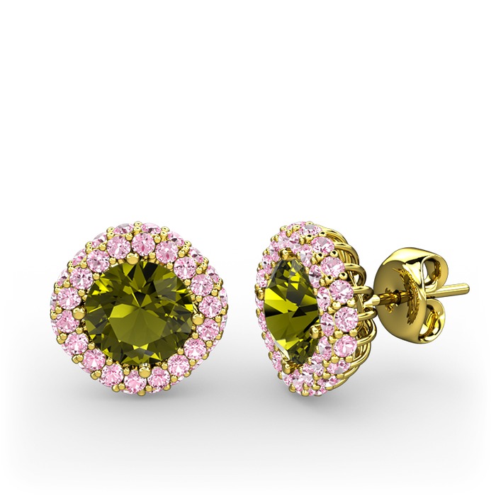 Peridot ve pembe kuvars 14 ayar altın küpe