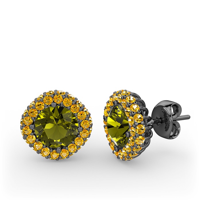 Peridot ve sitrin 925 ayar siyah rodyum kaplama gümüş küpe