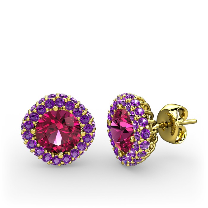Rodolit garnet ve ametist 8 ayar altın küpe