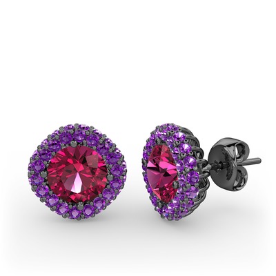 Rodolit garnet ve ametist 925 ayar siyah rodyum kaplama gümüş küpe