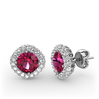 Rodolit garnet ve beyaz zirkon 925 ayar gümüş küpe