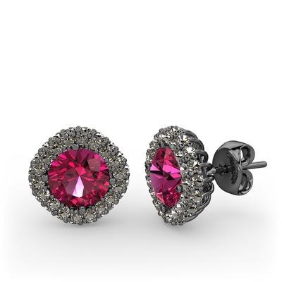 Rodolit garnet ve dumanlı kuvars 925 ayar siyah rodyum kaplama gümüş küpe