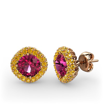 Rodolit garnet ve sitrin 925 ayar rose altın kaplama gümüş küpe