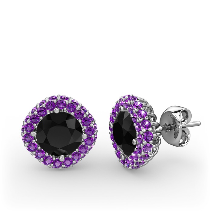 Siyah zirkon ve ametist 8 ayar beyaz altın küpe