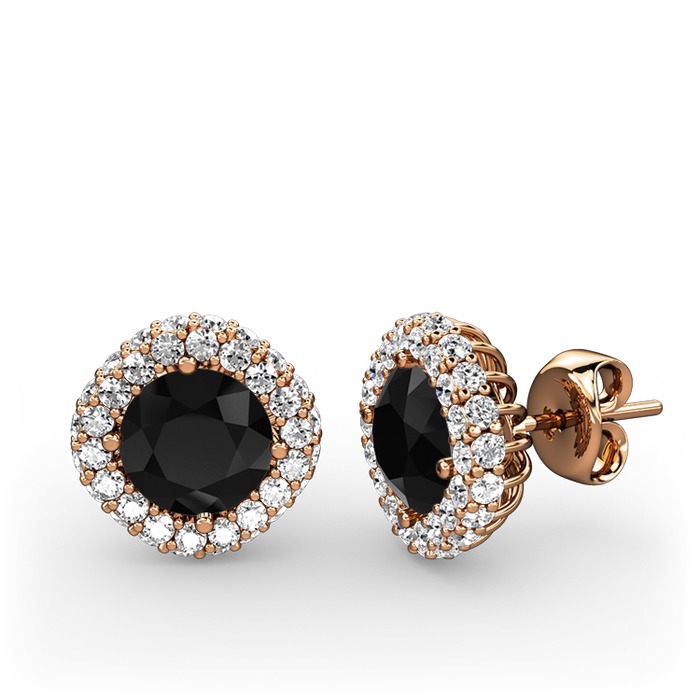 Siyah zirkon ve beyaz zirkon 925 ayar rose altın kaplama gümüş küpe