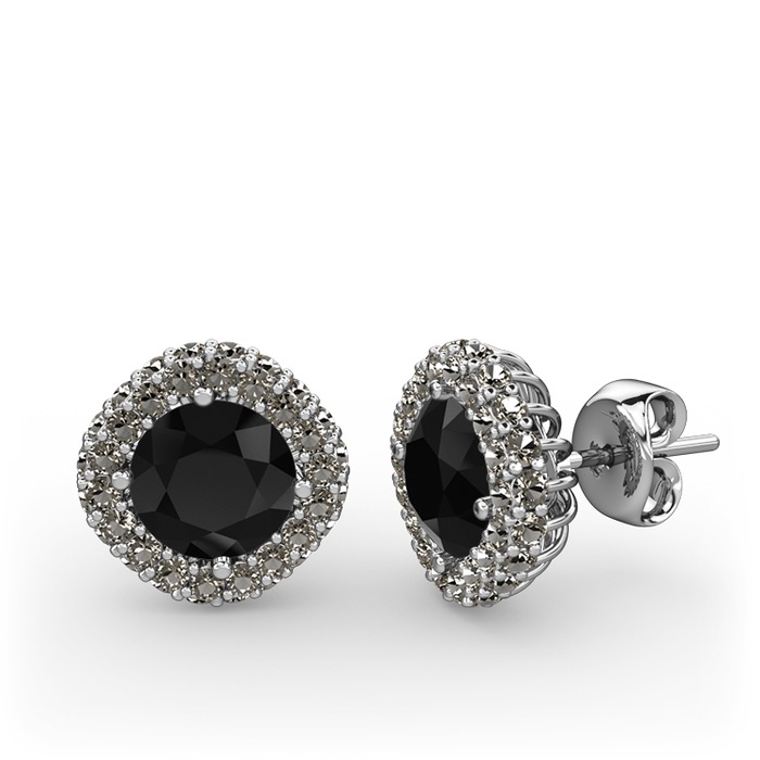 Siyah zirkon ve dumanlı kuvars 8 ayar beyaz altın küpe