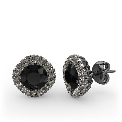 Siyah zirkon ve dumanlı kuvars 925 ayar siyah rodyum kaplama gümüş küpe