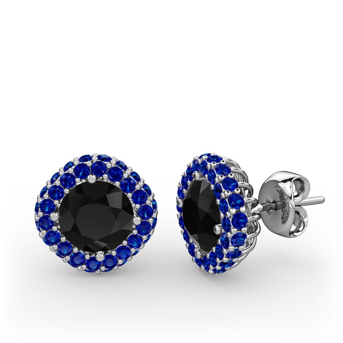 Siyah zirkon ve lab safir 925 ayar gümüş küpe