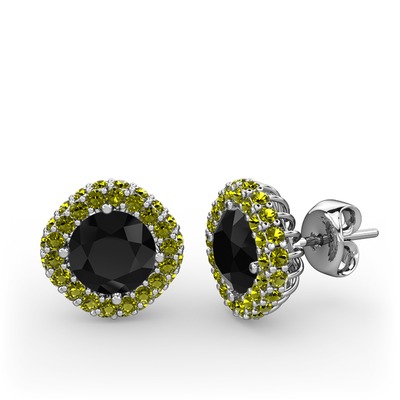 Siyah zirkon ve peridot 8 ayar beyaz altın küpe