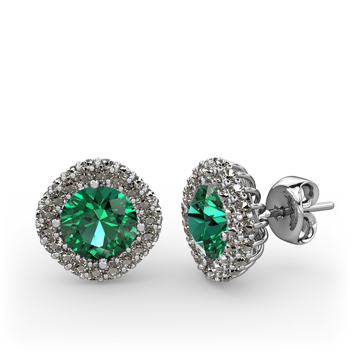 Yeşil kuvars ve dumanlı kuvars 14 ayar beyaz altın küpe