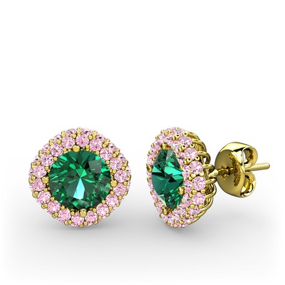 Yeşil kuvars ve pembe kuvars 14 ayar altın küpe