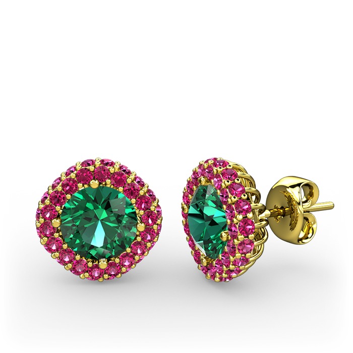 Yeşil kuvars ve rodolit garnet 18 ayar altın küpe