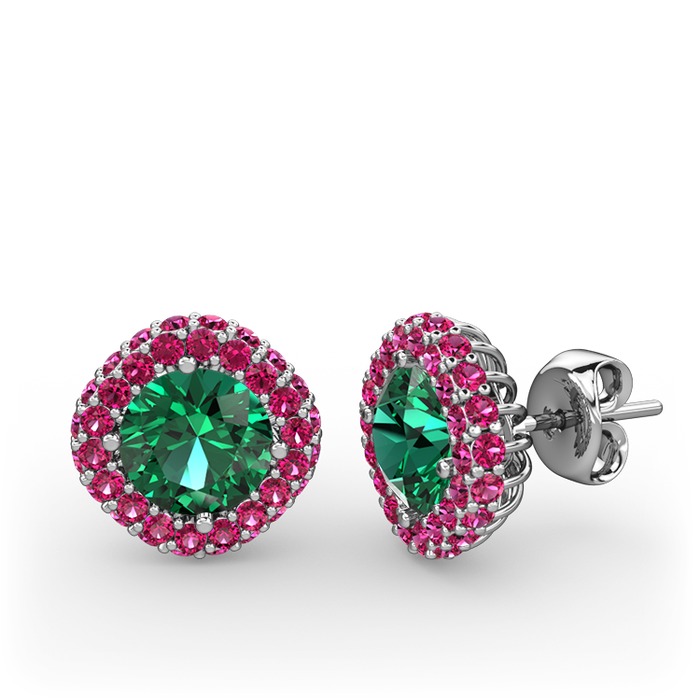 Yeşil kuvars ve rodolit garnet 18 ayar beyaz altın küpe