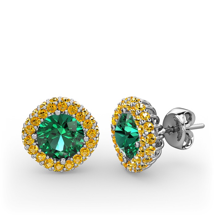 Yeşil kuvars ve sitrin 18 ayar beyaz altın küpe