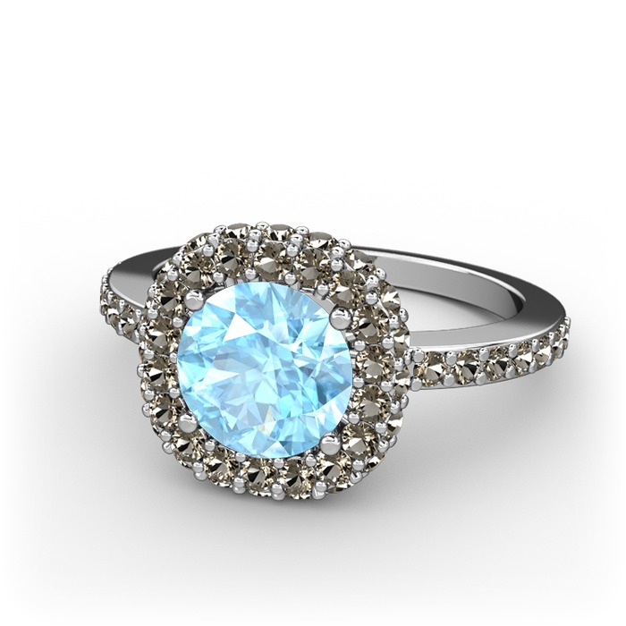 Akuamarin ve dumanlı kuvars 18 ayar beyaz altın yüzük