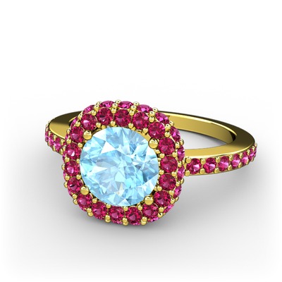Akuamarin ve rodolit garnet 925 ayar altın kaplama gümüş yüzük