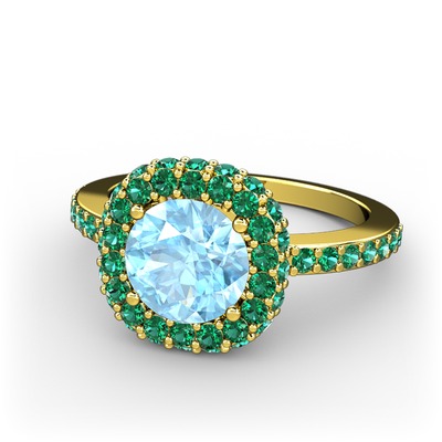 Akuamarin ve yeşil kuvars 18 ayar altın yüzük