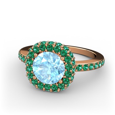 Akuamarin ve yeşil kuvars 925 ayar rose altın kaplama gümüş yüzük
