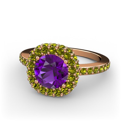 Ametist ve peridot 8 ayar rose altın yüzük