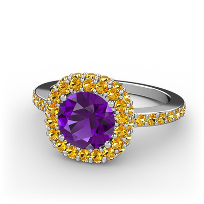 Ametist ve sitrin 14 ayar beyaz altın yüzük