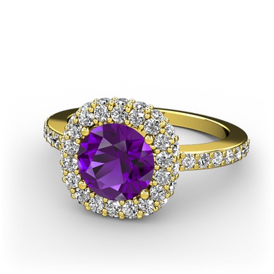 Ametist ve swarovski 925 ayar altın kaplama gümüş yüzük