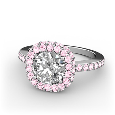 Beyaz zirkon ve pembe kuvars 925 ayar gümüş yüzük