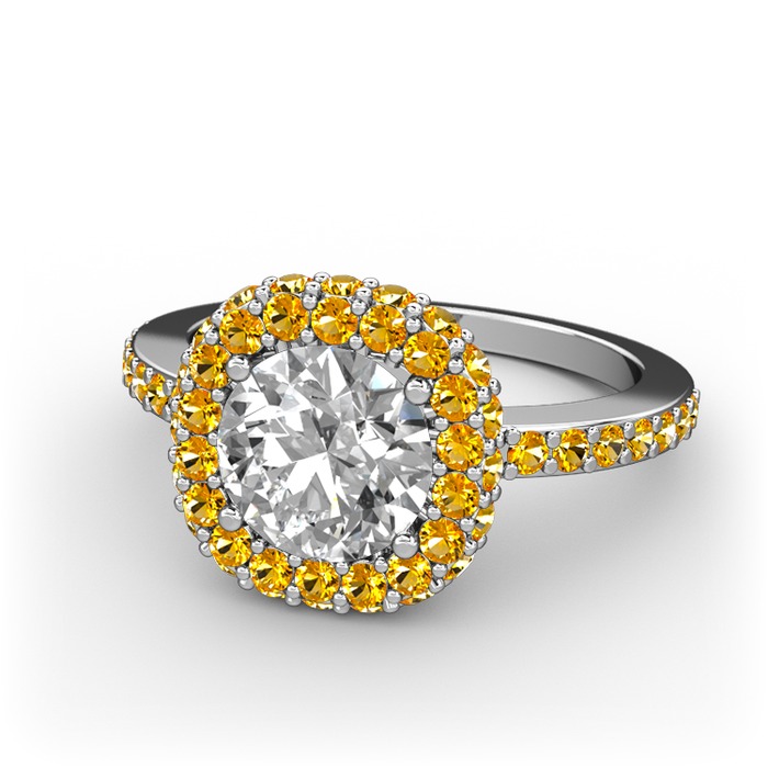 Beyaz zirkon ve sitrin 18 ayar beyaz altın yüzük