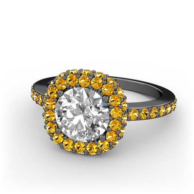Beyaz zirkon ve sitrin 925 ayar siyah rodyum kaplama gümüş yüzük