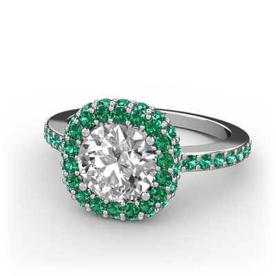 Beyaz zirkon ve yeşil kuvars 14 ayar beyaz altın yüzük