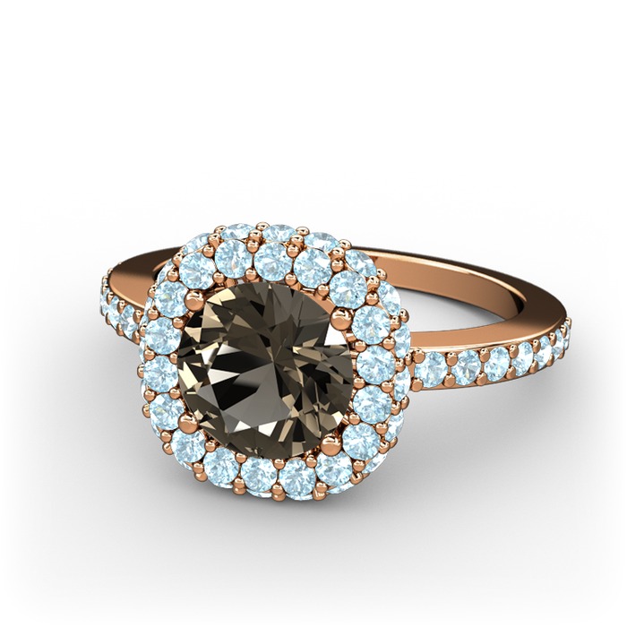 Dumanlı kuvars ve akuamarin 8 ayar rose altın yüzük