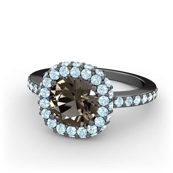 Dumanlı kuvars ve akuamarin 925 ayar siyah rodyum kaplama gümüş yüzük