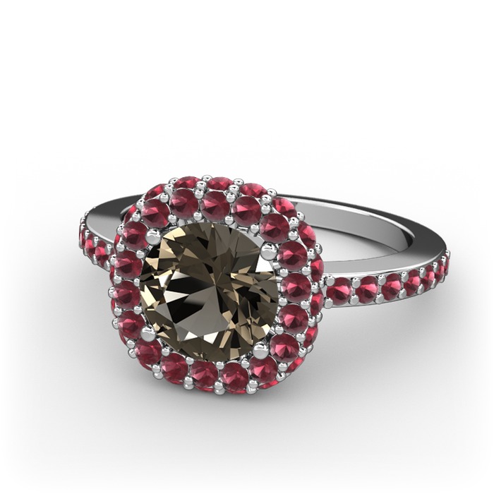 Dumanlı kuvars ve kök yakut 14 ayar beyaz altın yüzük