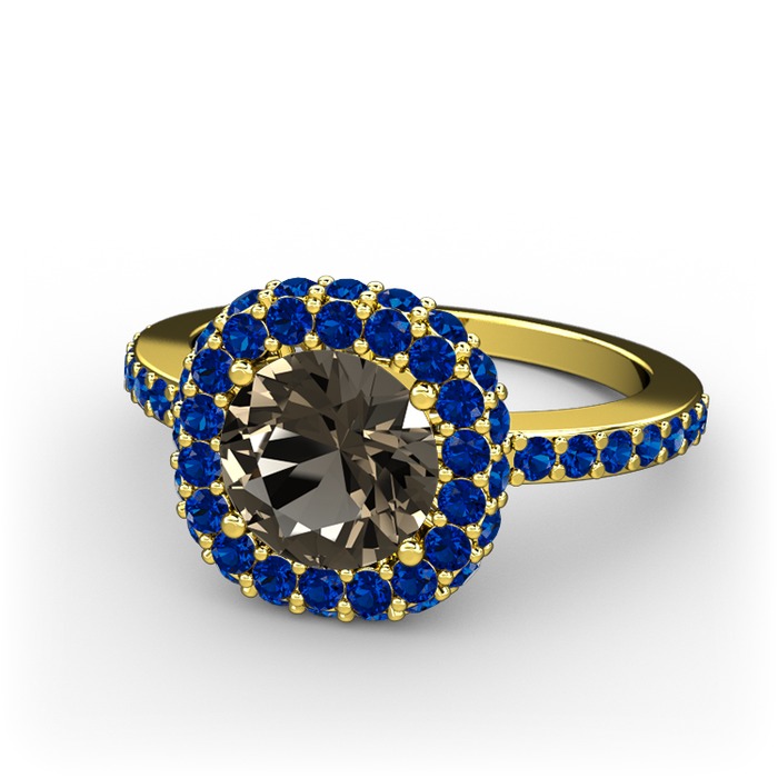 Dumanlı kuvars ve lab safir 8 ayar altın yüzük