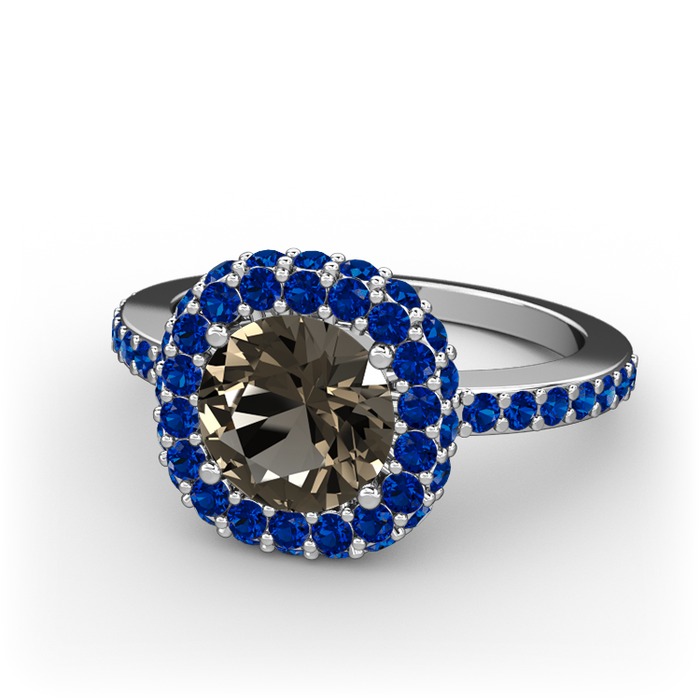 Dumanlı kuvars ve lab safir 8 ayar beyaz altın yüzük