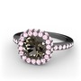 Dumanlı kuvars ve pembe kuvars 925 ayar siyah rodyum kaplama gümüş yüzük