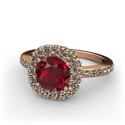 Garnet ve dumanlı kuvars 8 ayar rose altın yüzük