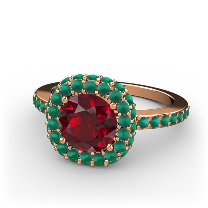 Garnet ve kök zümrüt 14 ayar rose altın yüzük