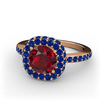 Garnet ve lab safir 8 ayar rose altın yüzük